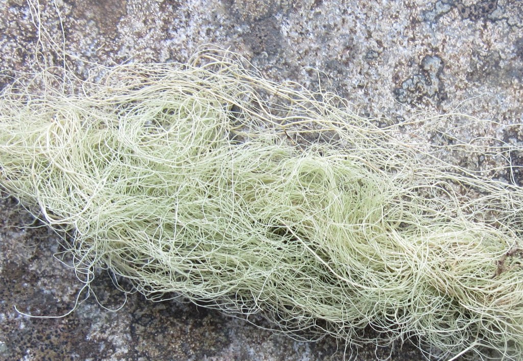In Scotland, Alectoria sarmentosa subsp. sarmentosa is a species that is restricted to relict Caledonian pinewoods in the Highlands where it grows on the bark and lignum of Scots pine and old birch. BLS distribution map