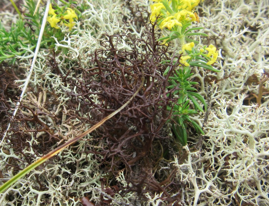 Cetraria aculeata is widespread in upland Scotland where it is found on heaths, stabilised shingle and acid sand dunes. BLS distribution map