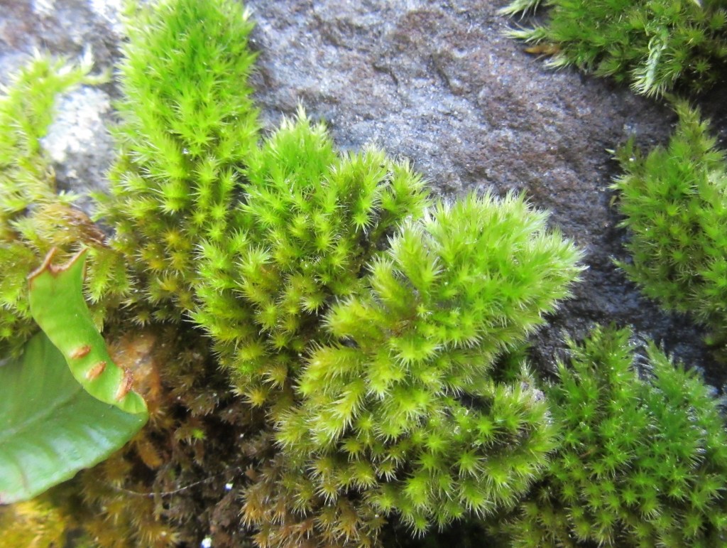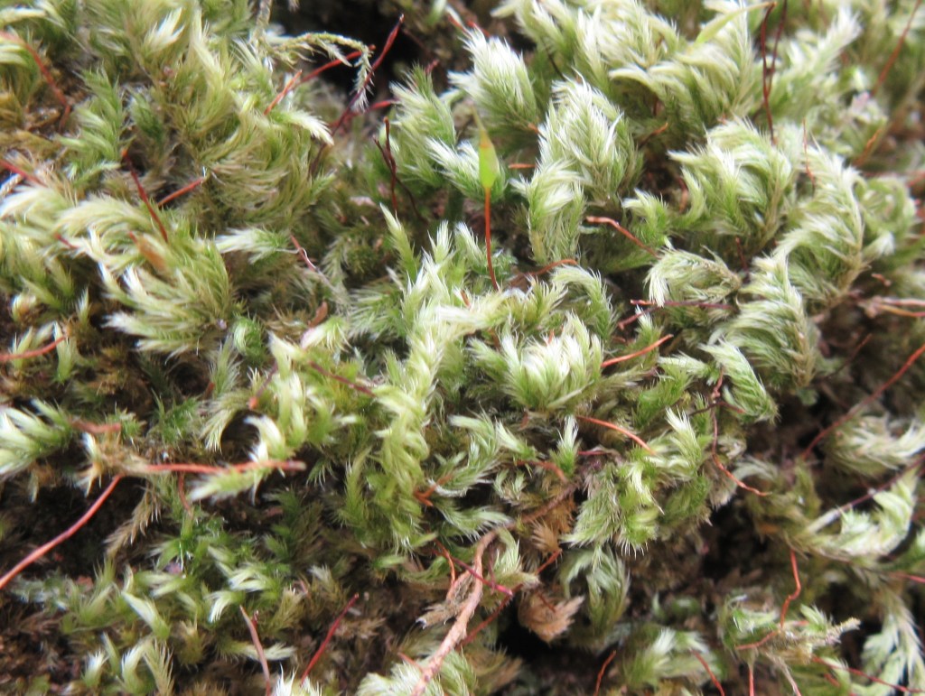 A pleurocarpous moss with green or golden green shoots that grow closely adpressed to the substrate. When dry, the short and crowded branches curve upwards and inwards, when moist, they spread outwards. The leaves are strongly pleated and taper gradually to a fine tip.