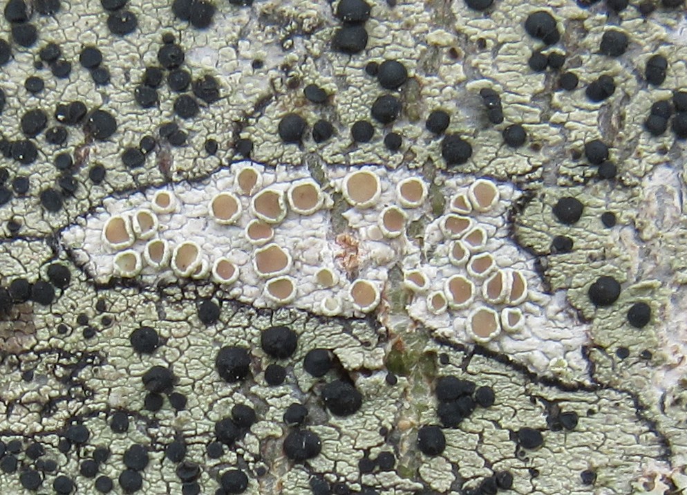 Lecanora chlarotera is often found alongside Lecidella elaeochroma and Arthonia radiata in a pioneer community on deciduous trees.