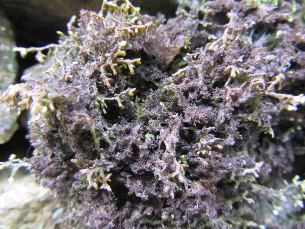 A species with a grey-brown or dark brown thallus that usually consists of a dense mat of more or less erect lobes. The margins of the lobes normally have numerous fine, outgrowths that may be branched which give a fibrillose appearance. When present, the apothecia have chestnut-brown discs with a lighter, isidiate margin.