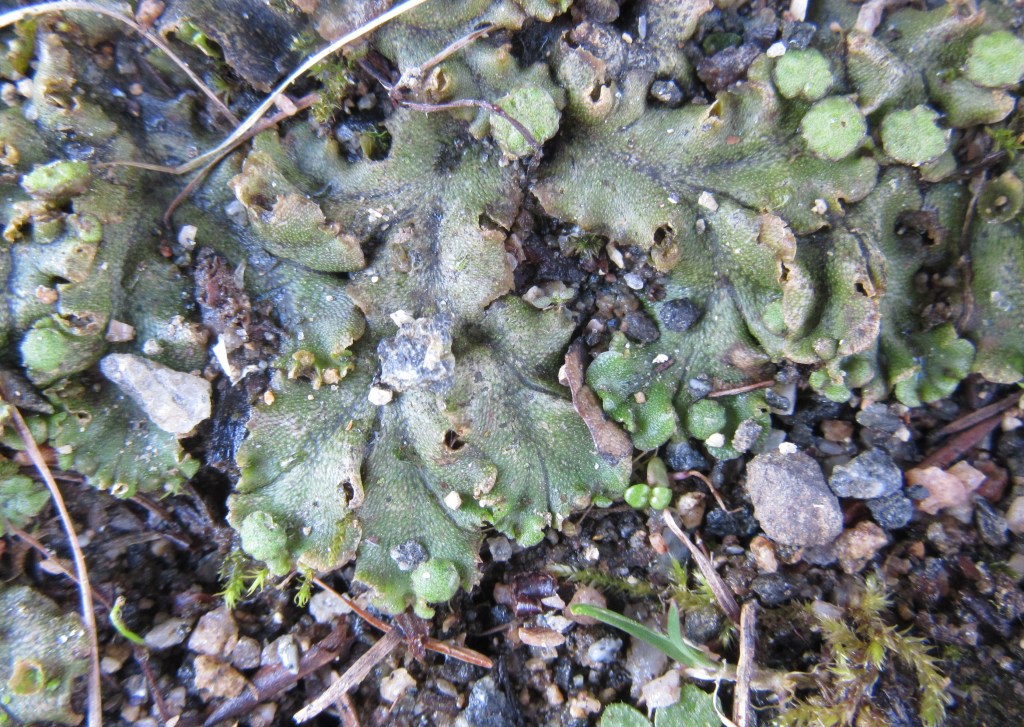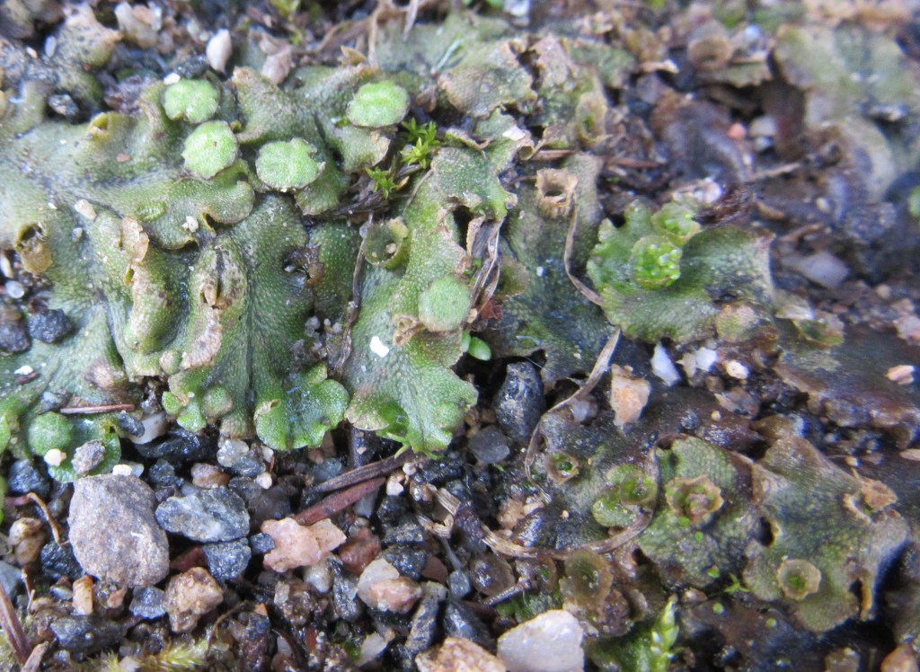 A thallose liverwort that often grows in dense mats. The dichotomously branched, thick and rigid thalli are pale or yellow-green when young, but become brown or purplish when old. On the upper surface of the thalli are cup-shaped gemma receptacles. Male and female plants have distinctive, stalked receptacles.