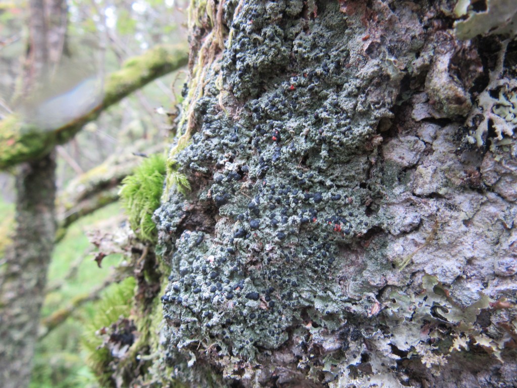 In Scotland, Mycoblastus sanguinarius occurs mainly in the upland areas of the northern, central and western Highlands where it grows on hard siliceous rocks, over mosses or direct on both bark or wood of deciduous trees such as birch. BLS distribution map