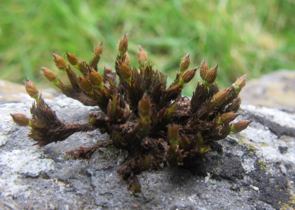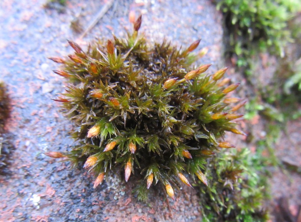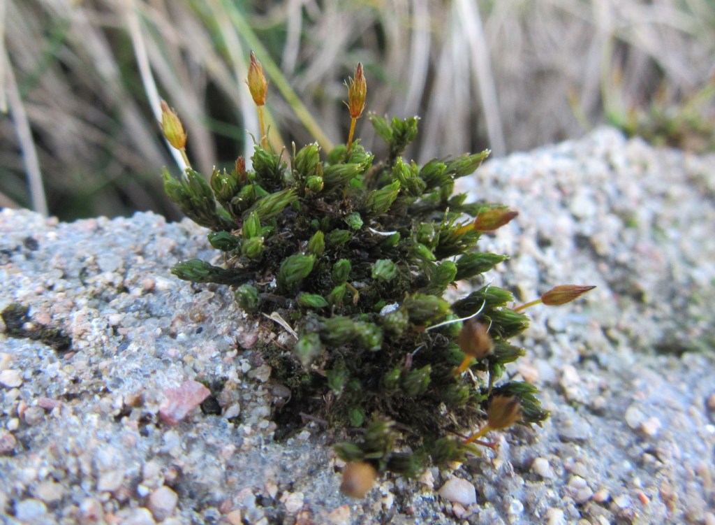 An acrocarpous moss that forms low cushions of green or brown, straight-leaved shoots with reddish-brown capsules that are held well above the leaves. When dry, each capsule is strongly ribbed.