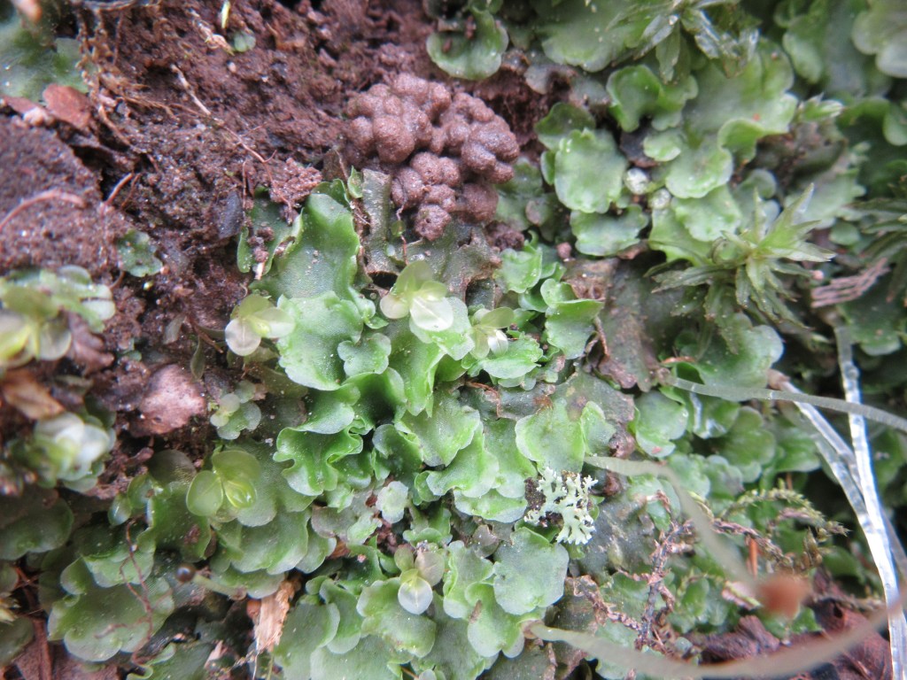A thalloid liverwort with green or blackish green thalli that lack red tinges. In autumn and winter it develops narrow branches at the tips that may be so numerous that they hide the thalli they develop from.