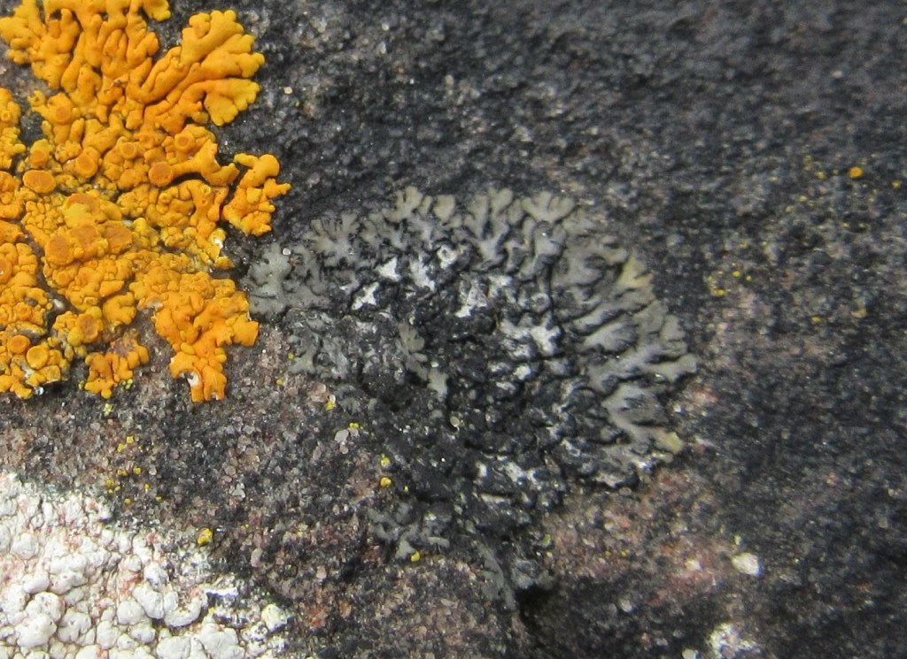 A foliose species that forms small, often orbicular and adpressed thalli can be pale brownish grey to brown to almost black. When wet, paler specimens become vivid green. The lobes are palmately divided at the tip and are often covered in laminal and marginal soralia.