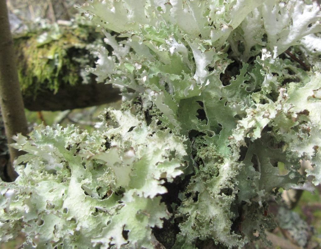 A foliose species with often mint-grey thallus. The lobes can be large and rising, with crisped margins which are often fringed with branched isidia or coarse soralia. The under surface of the lobes is often may pale or become brown or black.