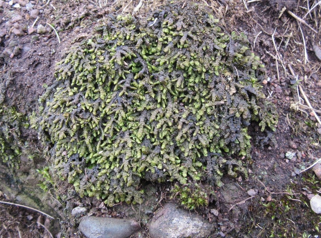 A leafy liverwort that grows in thick mounts or carpets that consist of relatively large shoots with broad leaves, lobules and underleaves that often curl upwards at the front edges.