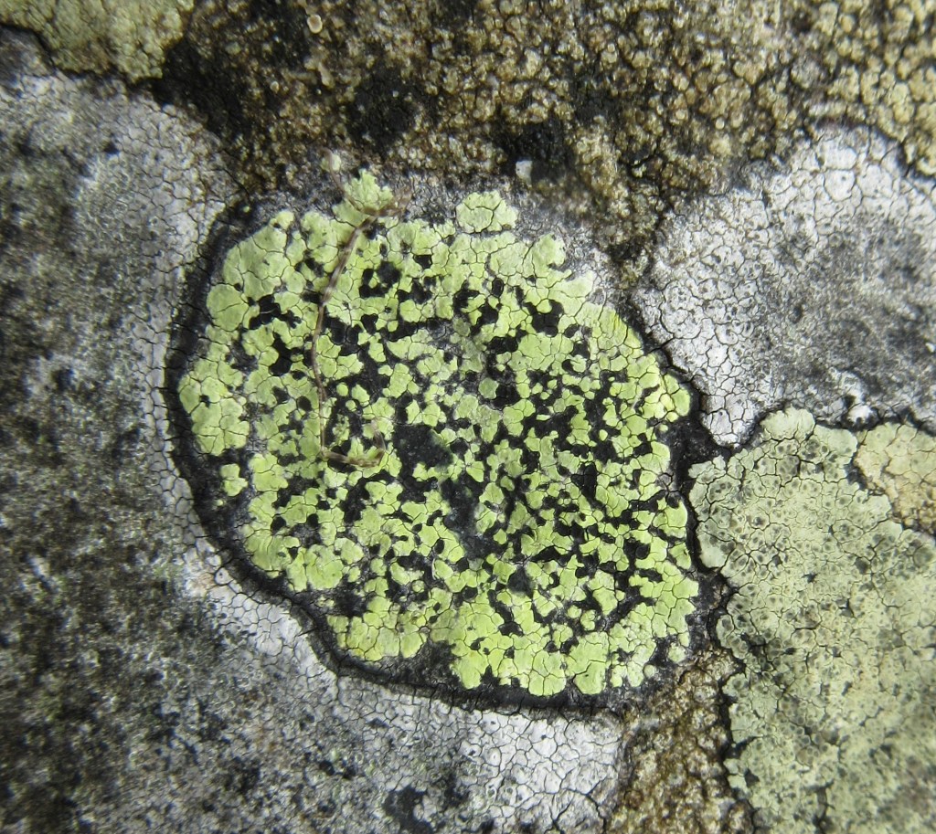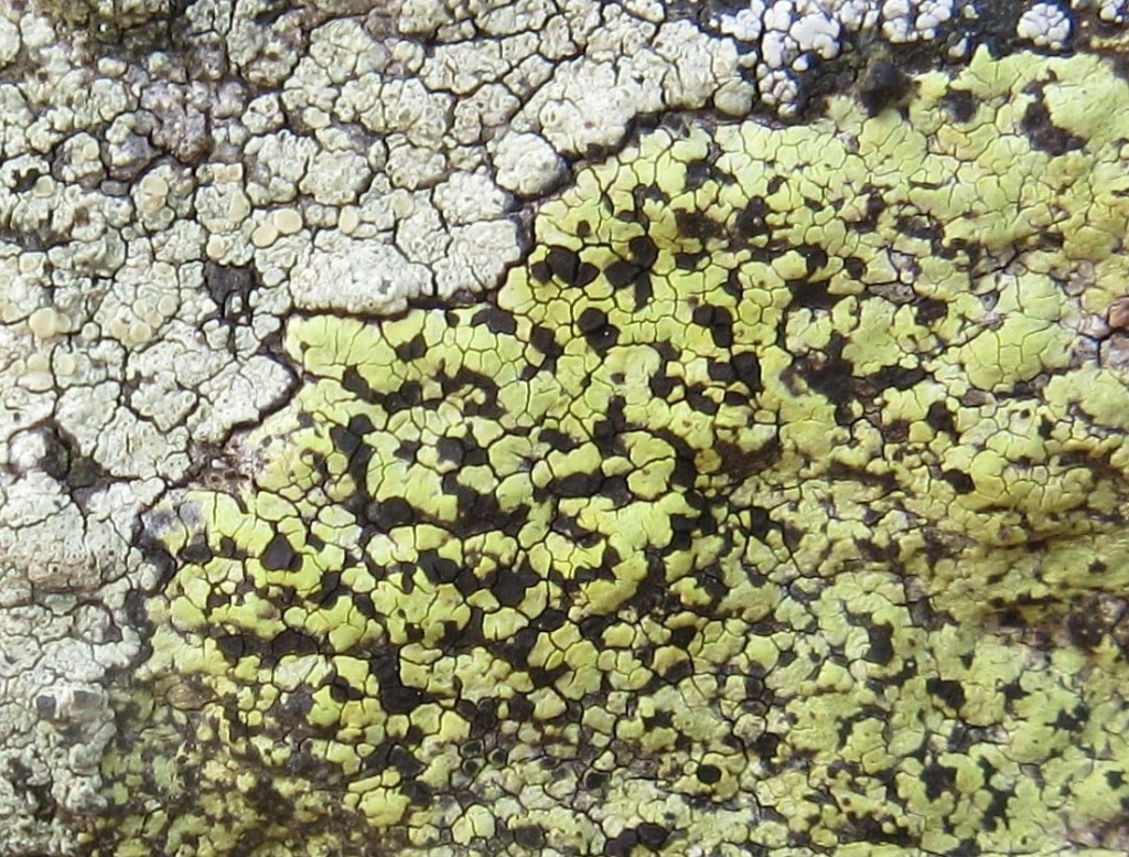 Due to the strong pattern of lines formed by the black hypothallus that runs between the areoles and the black apothecia, Rhizocarpon geographicum is often referred to as the map lichen.