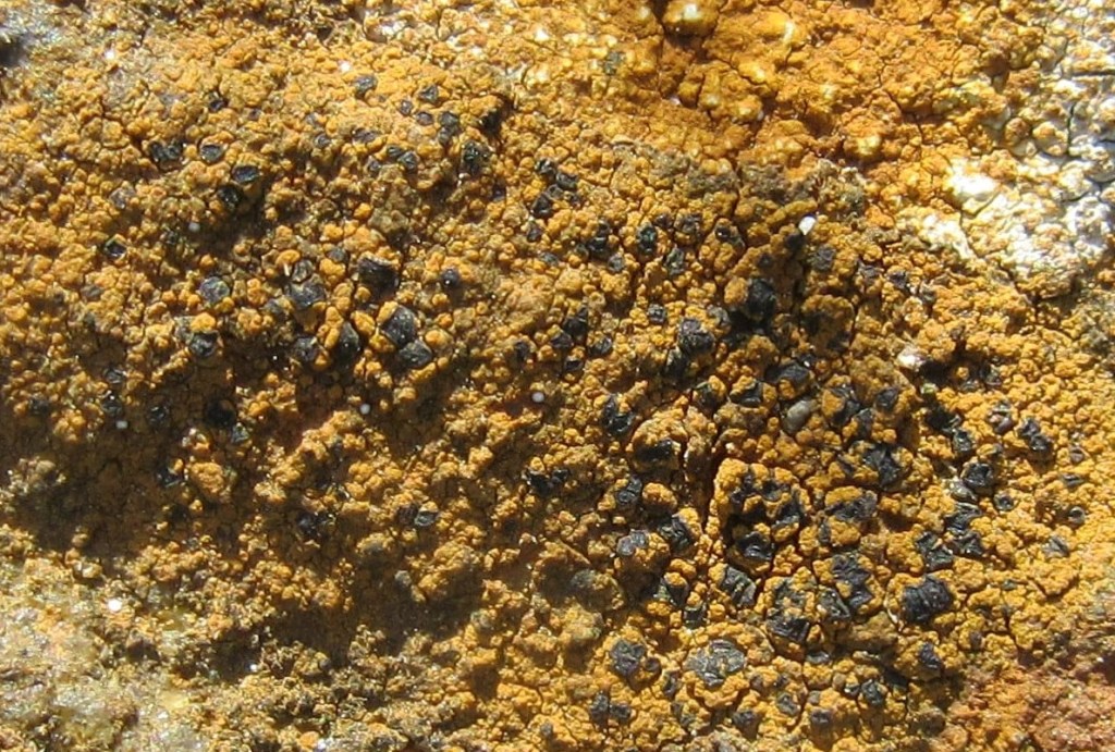 Rhizocarpon oederi, Acarospora sinopica and Tremolecia atrata are often found alongside each other on iron-rich, acid rock.