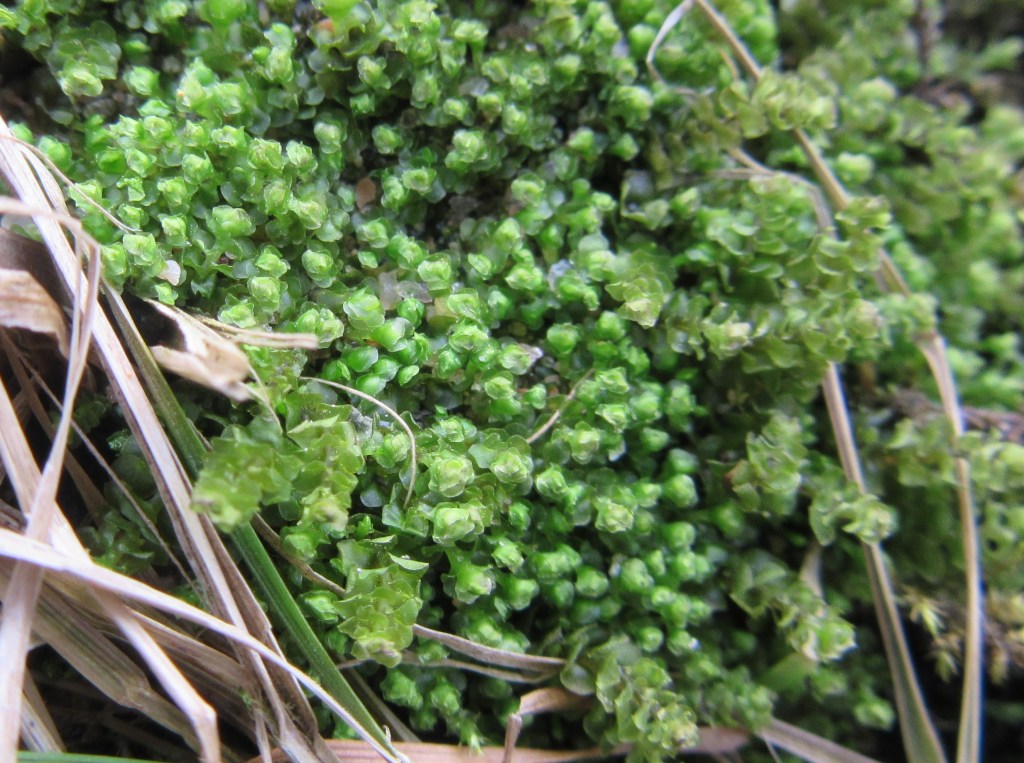 A leafy liverwort with large, dark green, reddish or yellowish-green shoots. The leaf lobes are rounded and straight-keeled and adpressed to each other. The front lobe does not run down the stem, but the back lobe does.