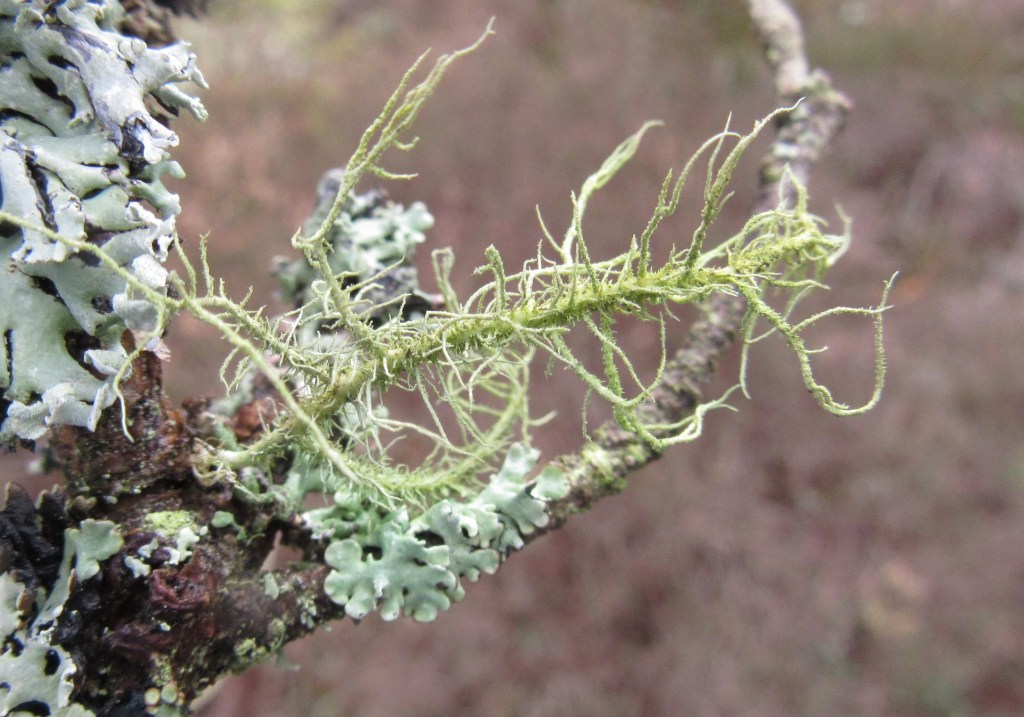 A fruticose lichen with a darker, grey-green thallus that tends to look bushy. It has a few main branches and is soft and placid when wet and rough when dry. The base is not blackened. The main branches are angular and irregular in section, ridged and very pitted, and covered in long, thin isidia, but no soredia.