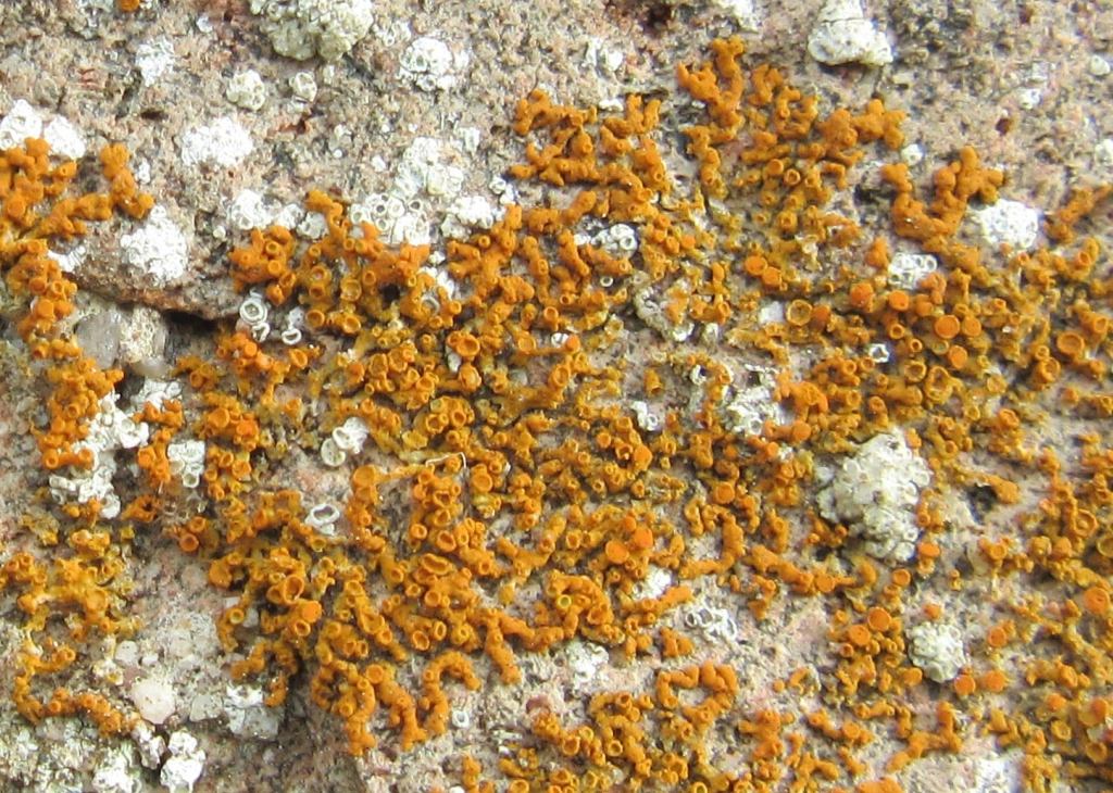 A distinctive foliose species with bright orange-red, narrow lobes that are discrete and closely adpressed and may form a neat circular patch. In larger specimens the centre of the thallus falls out. Apothecia are often numerous and are similarly orange-red with crenulate margins.