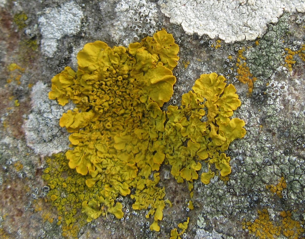 Xanthoria parietina is one of the foliose species that is most resistant to both sulphur dioxide and nitrogen pollution, which explains its abundance on farmland trees. It can, however, also be found in situations that are naturally nutrient-rich, such as trees and rocks in coastal areas.